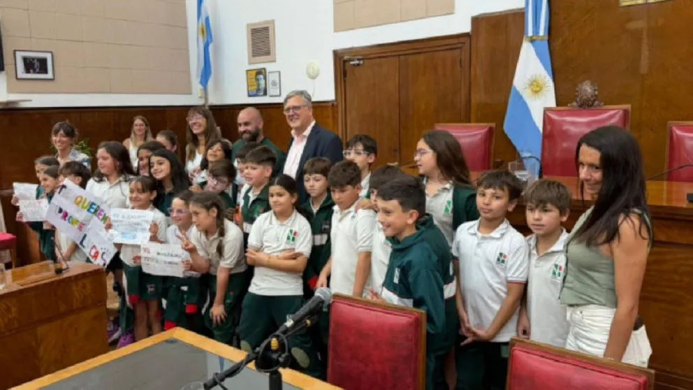 Egresados de Oro de la Escuela Nacional de Comercio Manuel Belgrano entregaron una placa a la histórica institución