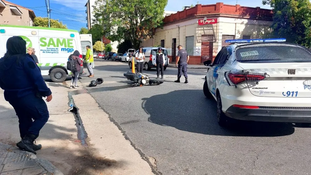 Motociclista tuvo que ser atendido por el SAME luego de chocar contra un auto en 3 de Febrero y España