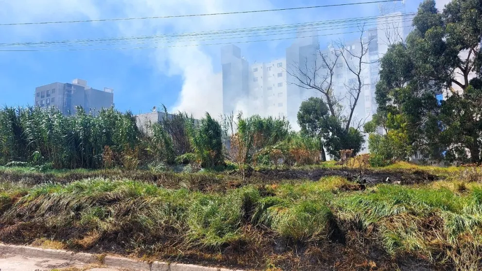 Alarma por un incendio de pastizales en un amplio baldío de Juan B. Justo entre Alem y Bernardo de Yrigoyen