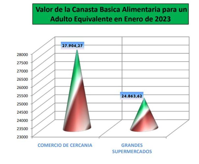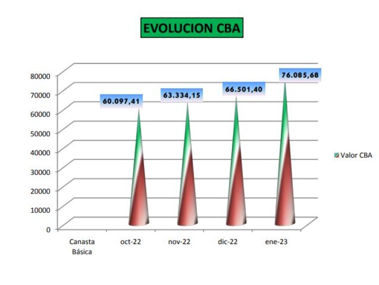 En el mes de enero de 2023, se observa un fuerte aumento del valor de la CBA, impulsado por el aumento promedio de los cortes de carne, que rondó el 31 %. Y esto tuvo un fuerte impacto sobre los valores de consumo.