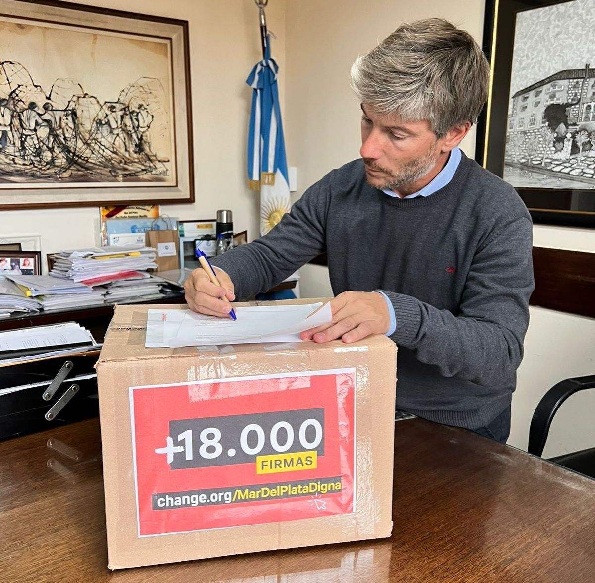 "Le entregamos hoy una caja al secretario de Gobierno, Santiago Bonifati, con las firmas en papel y un archivo electrónico con el listado de los firmantes, además de la petición al respecto", indicaron.