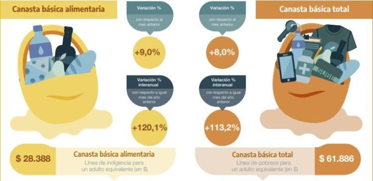 Por otro lado, se determina que para un individuo, el costo de la Canasta necesaria para no caer en la pobreza es de 61.000 pesos y de 28.388 esos para no ser indigente.