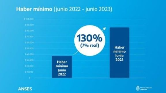 De esta forma, la jubilación mínima habrá tenido un 130 por ciento de incremento anual (junio 2022 - junio 2023), representando un aumento del 7 por ciento en términos reales. A su vez, con este nuevo aumento por movilidad, la Asignación Universal por Hijo (AUH) y la Asignación por Embarazo Para Protección Social (AxE) pasarán a ser de 13.864 pesos.