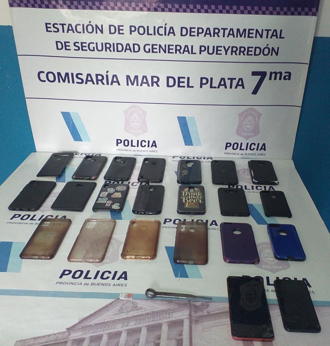 Del lugar también se sucuestraron fundas de celulares de diferentes tamaños, colores y marcas, un celular, un chip de celular marca Claro, prendas de vestir y una yuga. El Dr. Martinez Soto del FRPJ dispuso se notifique al menor (14) por la formación de una causa de Robo simple – Robo agravado. El Dr. De Marco de la UFI Flagrancia dispuso se notifique al  aprehendido de 19 años por Tenencia ilegal de arma de fuego de uso civil y se lo traslade a la Unidad Penal Nº 44 de Batán.