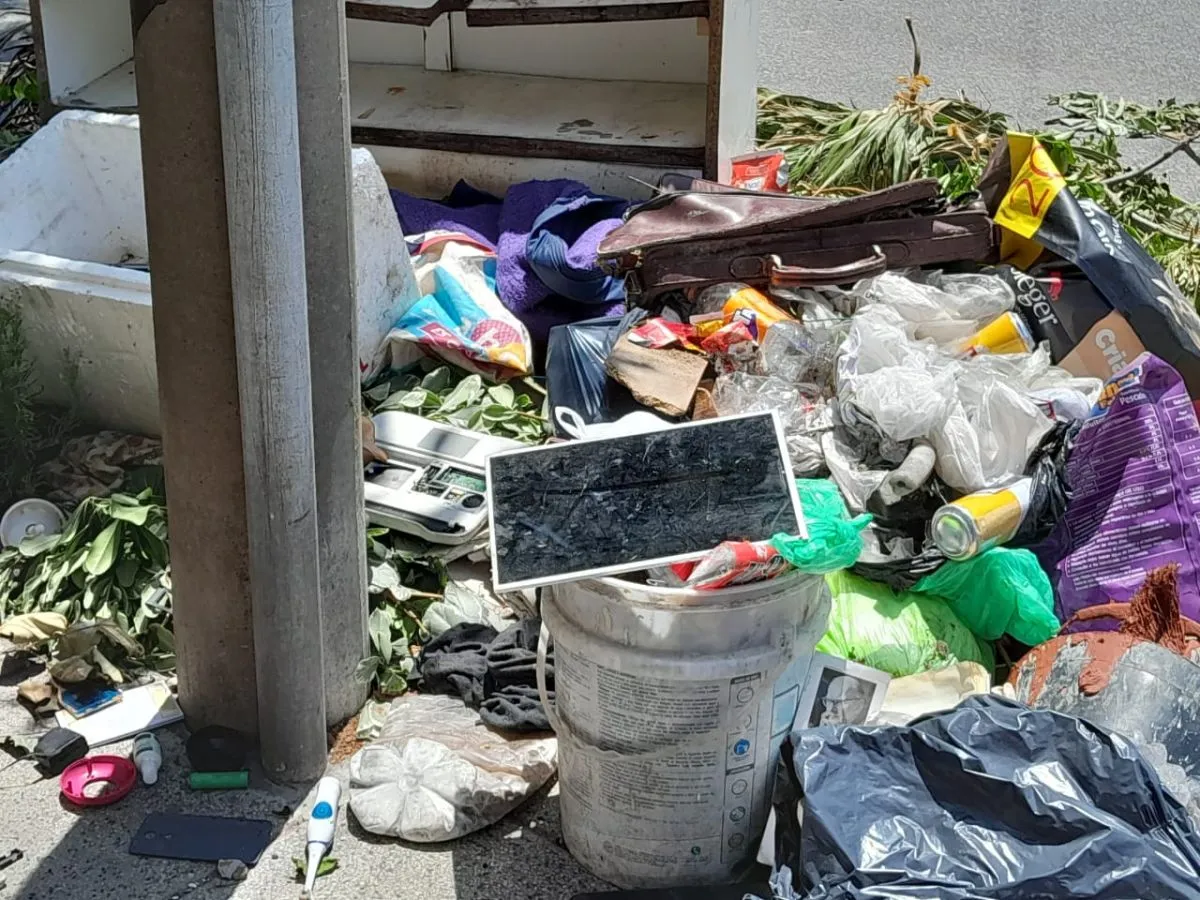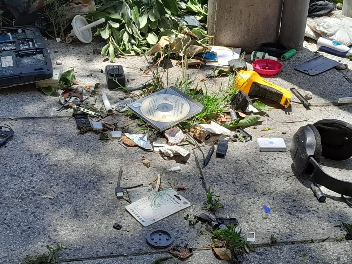 Desde hace años, la puerta de un antigüo supermercado es el sitio donde se amontonan bolsas, restos de podas, muebles, basura electrónica ( pantallas de Pc, plaquetas, teclados, etc.), colchones de gomaespuma y desperdicios de todo tipo.