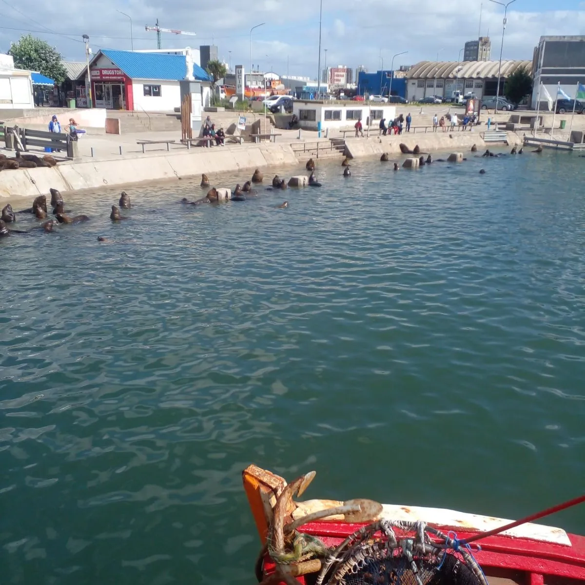 Las imágenes a las que accedió Infobrisas permiten ver como los lobos marinos que suelen reposar en la Banquina de Pescadores permanecen en ese mismo lugar, pero ahora con casi más de medio metro de agua que cubre la explanada.