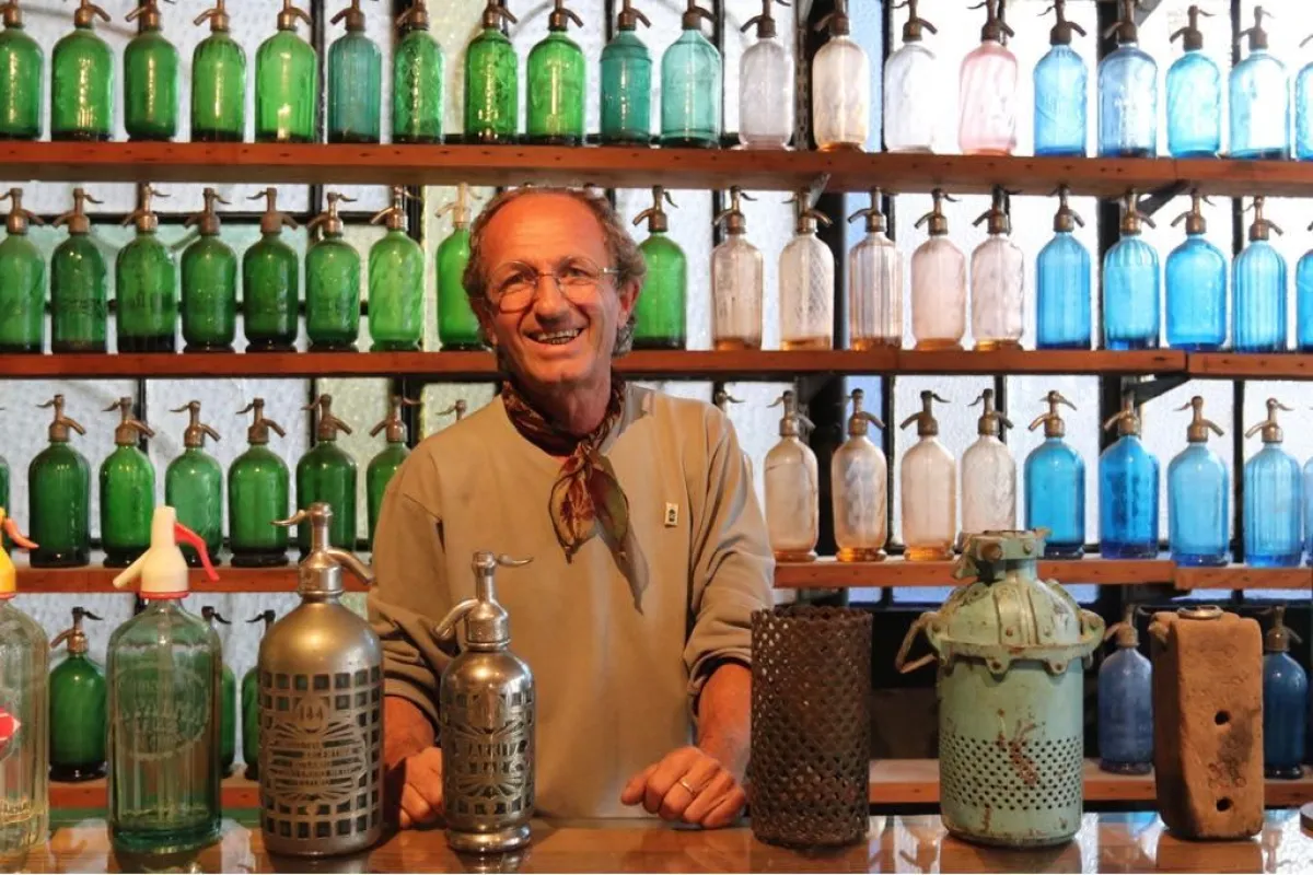 Pasaron algunas décadas para que los típicos envases que todos conocemos pasaran a formar parte de nuestra vida cotidiana. “En la primera etapa la soda llegaba a los restaurantes, a los bares, a las despensas, tenías que ir a comprar ahí si querías tomarla. A partir de 1930 se inventa el reparto de soda a casas de familia, primero en carros tirados por caballos y luego en camiones hasta que en los años 50, 60, 70 es un furor, comienza a ser una tradición en la mesa de los argentinos. Por eso creí que se merecía tener un museo. En los años 80 cuando se empieza a perder un poco el consumo de soda, se empieza a sacar el vidrio y a utilizar el plástico tanto en las sodas como en las gaseosas. Ahora se está utilizando mucho nuevamente en los bares, se está utilizando mucho el sifón de medio litro para los aperitivos o para las casas de familia.”