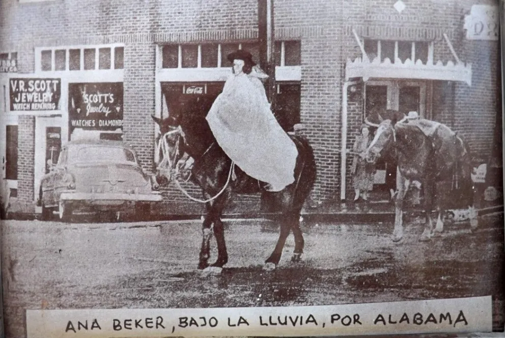 En diálogo con POSTALES DE PROVINCIA, Noelia recorrió parte de la vida de esta loberense nacida en 1916: “ Ana Beker nació en Lobería, hija de Juan Beker y Catalina Iungblut y aunque siendo pequeña se fue del pueblo seguramente su corazón siempre latía por esta tierra. Y fue en Algarrobo, en el partido de Villarino, en el sur de la provincia de Buenos Aires, donde desarrolló su amor por todo lo ecuestre y es así que la van a encontrar siendo muy joven cumpliendo una promesa, uniendo esa localidad con Luján y va a ir por más. Después va a recorrer varias provincias (Misiones, La Pampa, Catamarca, Salta, Santiago del Estero y La Rioja) cabalgando sus inseparables compañeros hasta que se propone algo mucho más ambicioso: unir las tres Américas con sus caballos.”