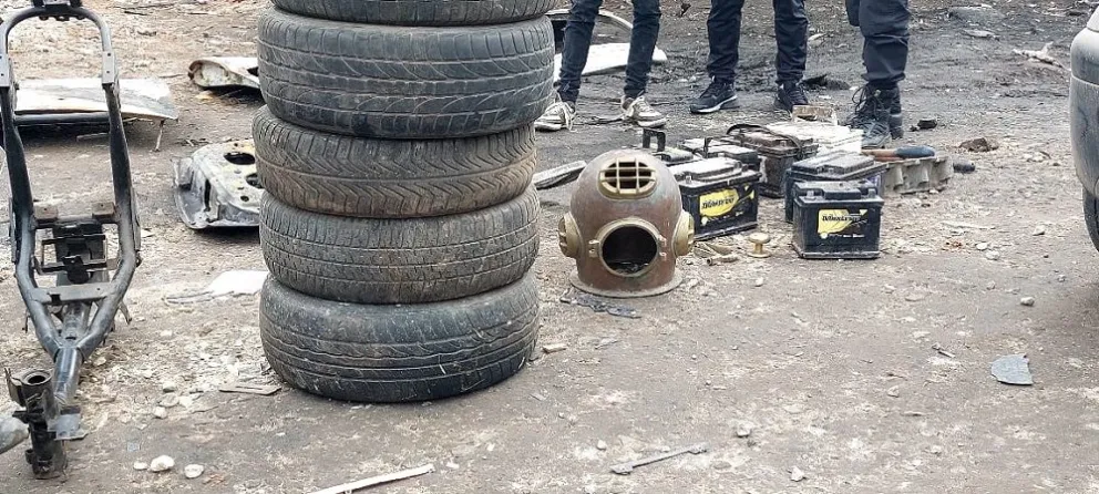 Allanan una chatarrera en el barrio Las Dalias y encuentran una escafandra de valor histórico