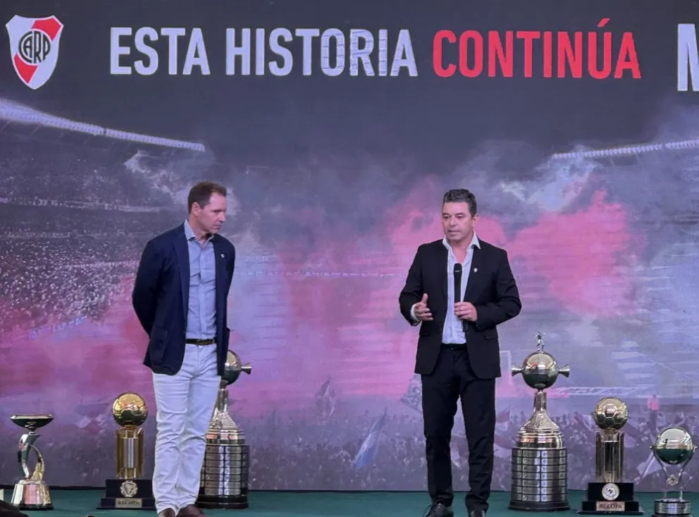 Luego tomó la palabra Marcelo Gallardo, a quien se lo vio muy emocionado. "Lo primero que siento en este momento es muchísima emoción que tiene que ver con muchos sentimientos encontrados, no hace mucho que me fui, pero parecería que nunca me fui y volver a entrar al club, y recorrer los pasillos y el mundo River me hace sentir muy en casa y eso es una emoción interna que me reconforta y me da felicidad".