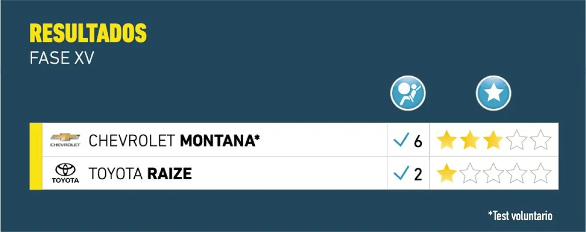 Paralelamente, y en contraste al desempeño del vehículo de la marca japonesa, la entidad destacó a la pickup Chevrolet Montana, que obtuvo tres estrellas y demuestra una vez más la "brecha en seguridad vehicular" en la región.