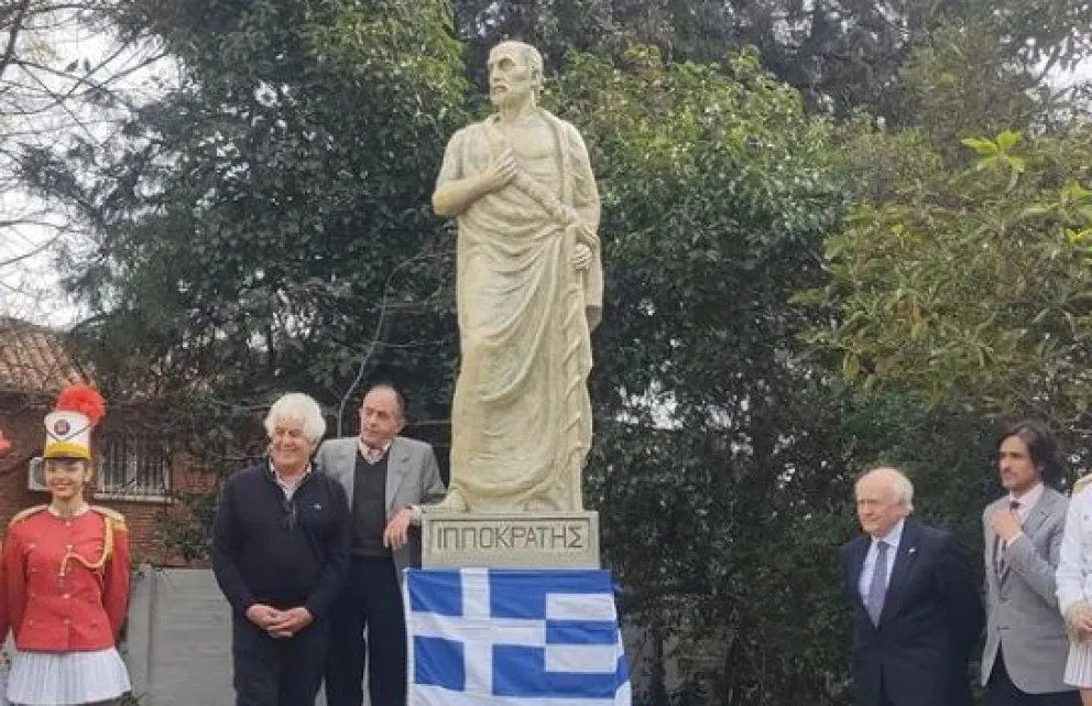 La obra de arte fue donada por el doctor Pericles Xynos, en conjunto con la Colectividad Helénica de Mar del Plata, para remarcar los valores de la profesión. La estatua fue descubierta ayer por Xynos y también por Fernando Santomil, presidente del Consejo de Administración de la Fundación Médica, y Carlos Pilaftsidis.