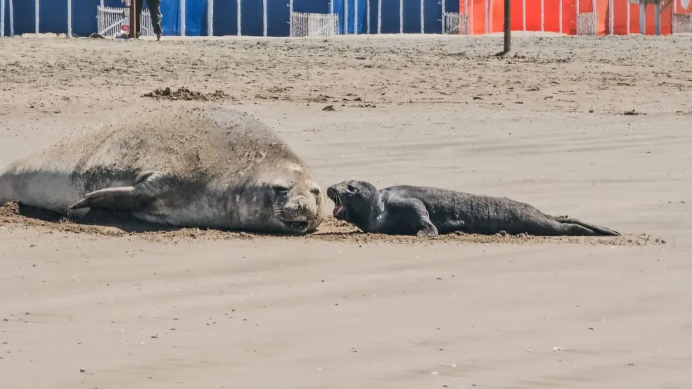 "Tenemos la sorpresa y visita de una especie marina en nuestras costas, un elefante marino que tuvo cría hace apenas unas horas. La madre se encuentra en un momento de amamantamiento crucial para la supervivencia del pequeño", explicó Martino.