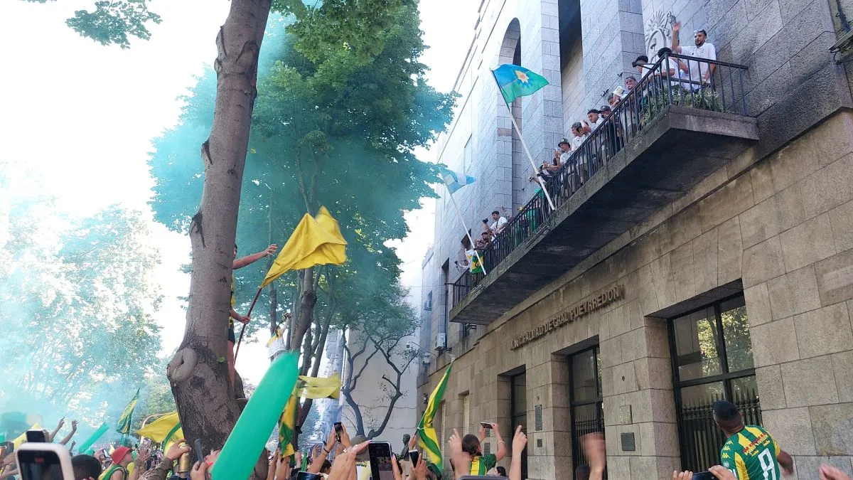 Los hinchas de Aldosivi, frente a las puertas del Palacio Municipal en Luro e Yrigoyen, festejaron junto a los jugadores que salieron al balcón a saludarlos y celebrar junto a la copa. Luego se desarrolló una multitudinaria caravana que terminó en la Banquina de Pescadores.