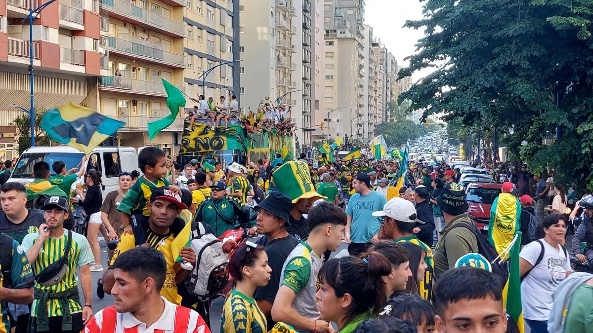 Una multitud de hinchas de Aldosivi se congregó este martes para celebrar un nuevo ascenso del equipo de Mar del Plata a la máxima categoría del fútbol Argentino. Contra todo pronóstico, el Tiburón venció como local el pasado sábado 26 de octubre a San Telmo en la última fecha de la Primera Nacional y gracias al empate de Nueva Chicago jugó la final por el segundo ascenso.