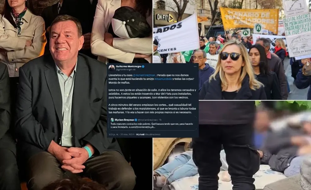"Llevatelos a tu casa. Pensás que no nos damos cuenta lo que está haciendo tu amigo Juan Grabois y todas las orgas? Manga de mafias", arremetió Montenegro contra Myriam Bregman, exdiputada del Frente de Izquierda (FIT), quien lo había cuestionado.