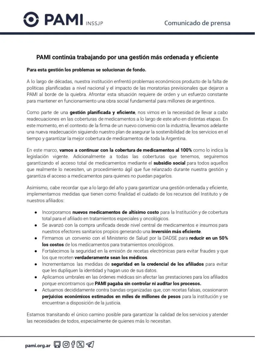 El PAMI también ha informado que, en paralelo con este recorte, se están implementando una serie de medidas para optimizar el uso de los recursos. Entre ellas se destacan: