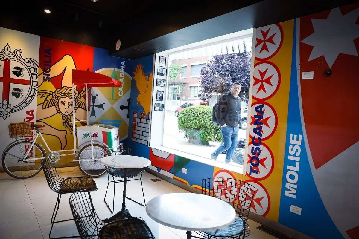 Imponente, con luces en forma de bota italiana, un carrito vintage con sombrilla tricolor y heladeras que exhiben canolis tentadores, este lugar no solo deleita el paladar, sino que también cuenta historias.