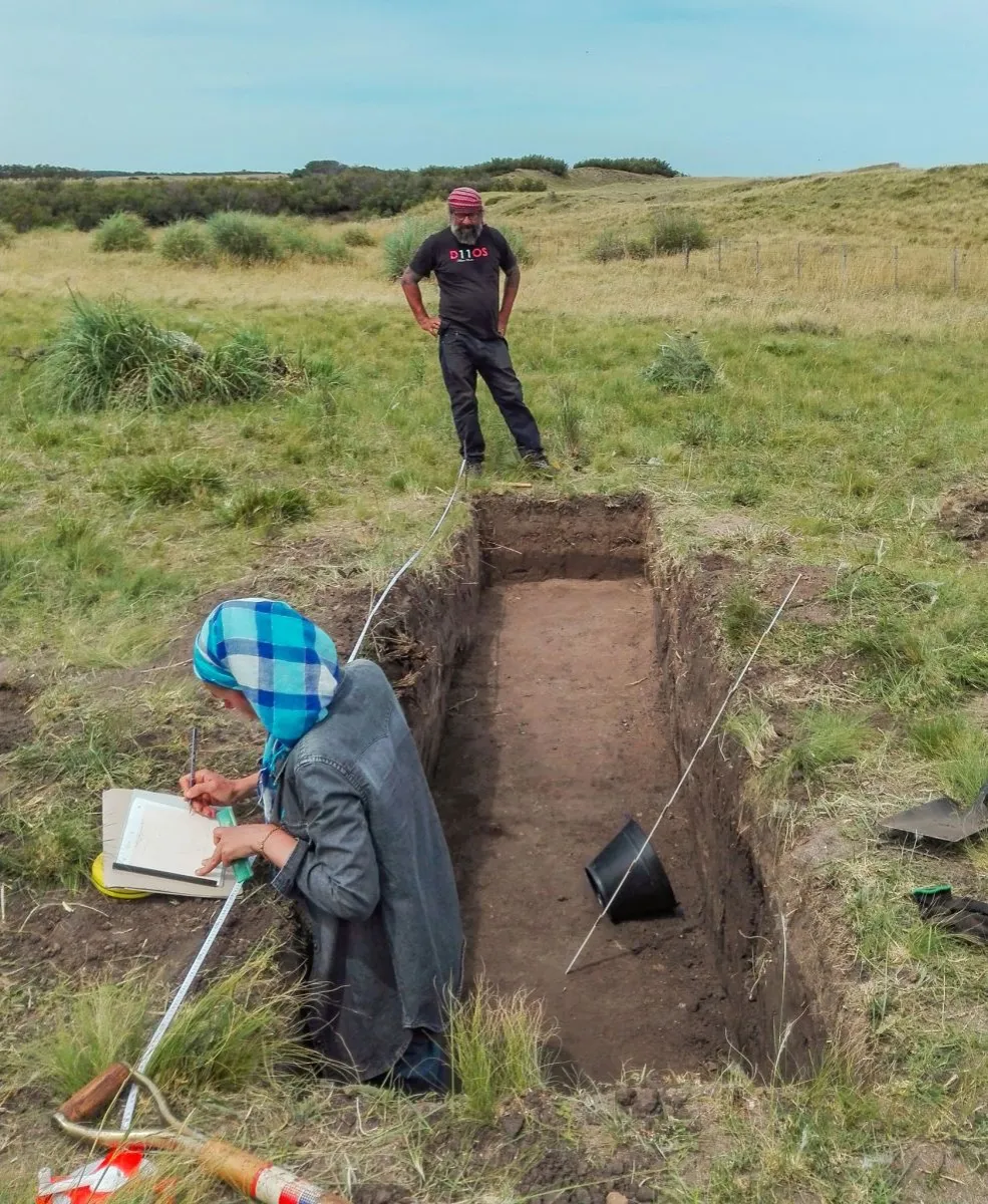 “Aquí se han encontrado elementos de valor de todo lo que puedas imaginar. Para nosotros que somos descendientes del pueblo Tehuelche Septentrional, que ustedes conocen como Pampas, aquí estaba el único cementerio constatado en la costa de toda la provincia de Buenos Aires y podemos decir también de Patagonia. Esto fue estudiado por Ameghino en 1912 y nosotros estamos en vías de poder recuperar los cuerpos que están en el Museo de la Plata.”