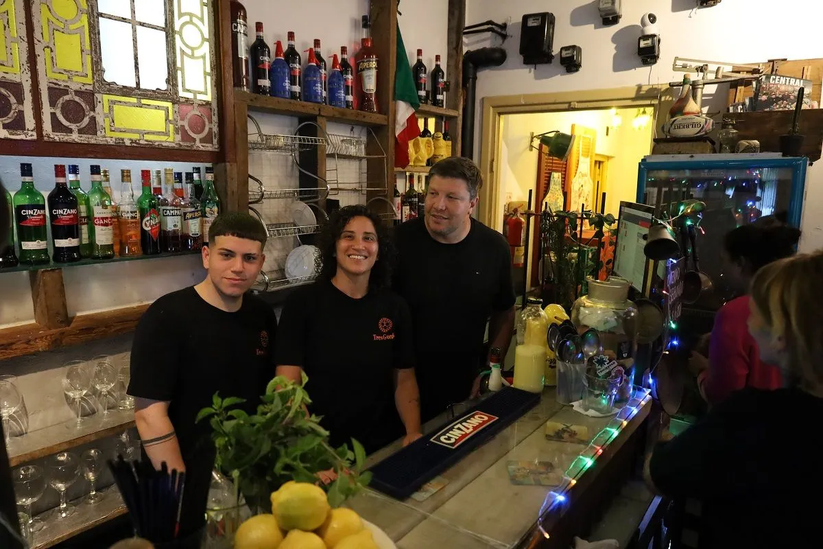 Tres amigos deciden poner un bar en Balcarce y Dorrego. Como se denominan “gordos profesionales”, el número de socios y su apariencia física forman el nombre del emprendimiento. Tres Gordos, porque “nos gusta comer como en nuestras casas”, como asegura Leandro, uno de los dueños.
