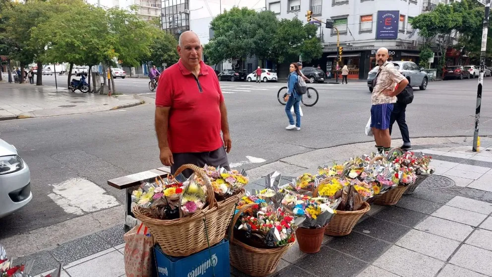 "Empecé en 1983. Hoy arranqué a las 6.00", indicó, detallando que el combo de dos rosas lo está vendiendo a 2500 pesos, mismo precio que el ramito con variedad que preparó para la ocasión.