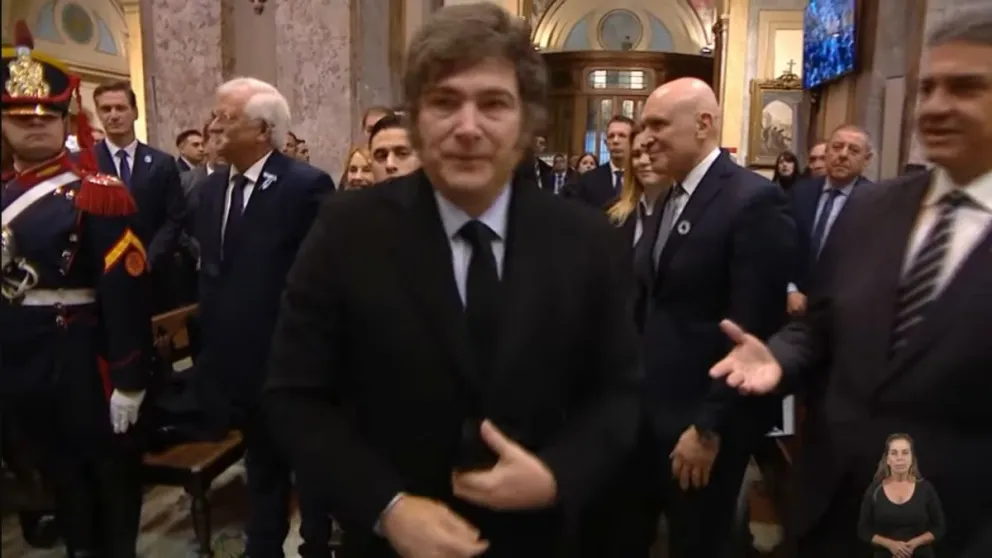El mandatario ingresó a la Catedral Metropolitana cerca de las 9.00 junto a su hermana y secretaria general de la Presidencia, Karina Milei, seguido por los ministros de su Gabinete, Con Luis Petri, Guillermo Francos y el canciller Gerardo Werthein. Allí fue recibido por el Arzobispo de Buenos Aires, Monseñor Jorge Ignacio García Cuerva.