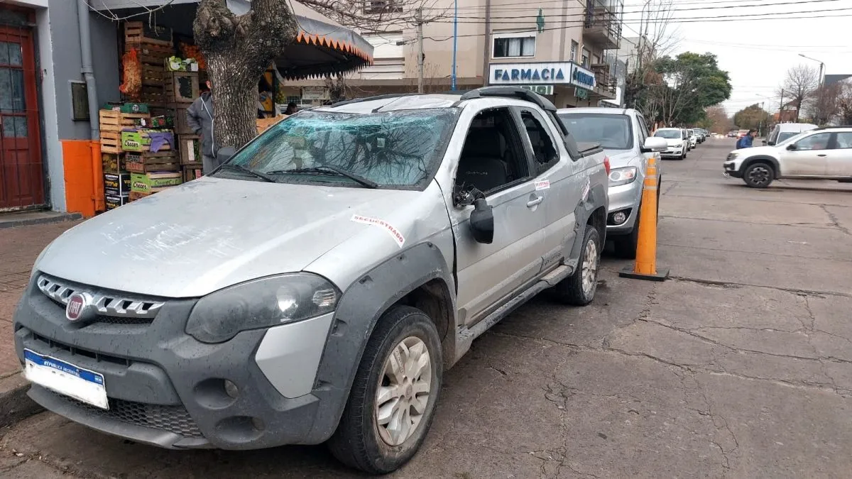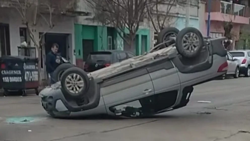 La violencia del impacto fue tal que la camioneta terminó dada vuelta, con sus cuatro ruedas hacia arriba.