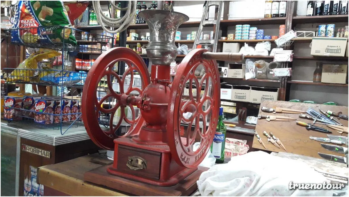 Sobre el mostrador, una caja registradora y una antigua máquina de moler granos de café mantienen su belleza original. ”Esa moledora es de 1898, de origen americano y también tiene su historia porque cuando la teníamos en un galpón y aunque es de café mi padre nos mandaba a moler granos de maíz para alimentar a los pollitos.”