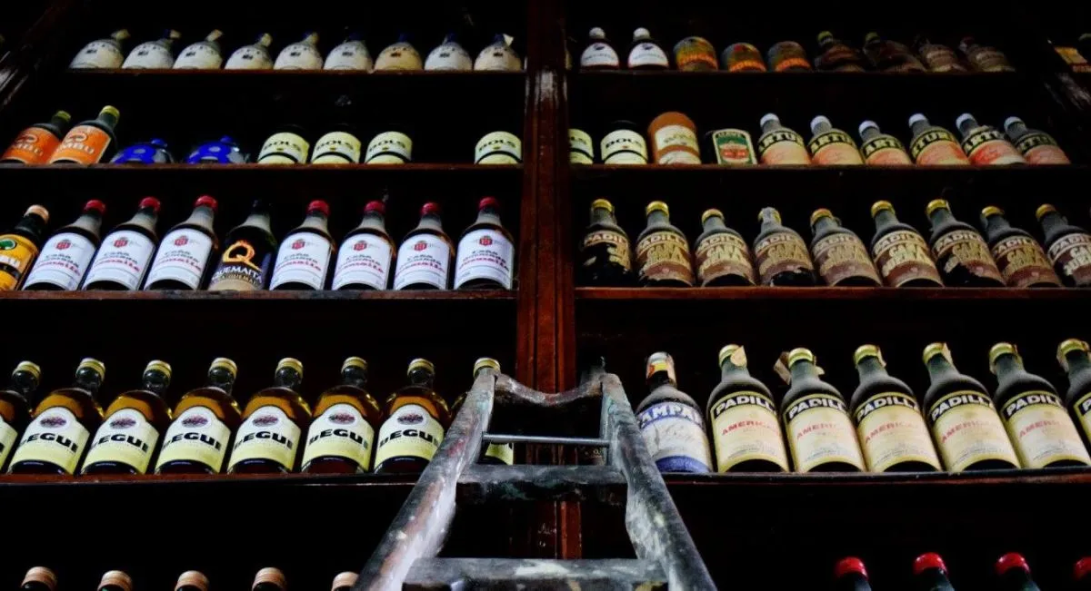 Sobre las estanterías de madera que llegan hasta el techo, descansan desde hace varias décadas botellas de distintas bebidas, la mayoría de ellas con sus etiquetas amarillentas y con una fina capa de polvo. En el negocio de Caveda hay dos decisiones inamovibles: esas botellas ni se venden ni se limpian, porque sería quitarles el valor de su historia, están intactas, en el mismo lugar donde se las puso para exhibirlas.