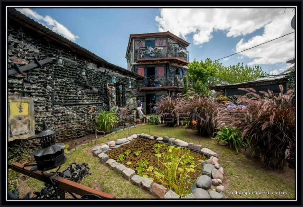 El mismo cuenta como surgió la idea: “Me di cuenta que lo que más tira la gente son botellas, así que pensé que pegándolas con arena, cemento y ceresita se podían levantar paredes. Hablé con un arquitecto amigo mío para que me asesore y empecé a hacer toda una estructura abstracta, porque la casa no tiene por qué tener una forma clásica."