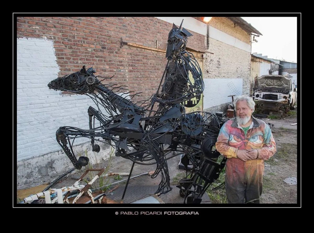 “A mi me ayudó mucha gente, tuve buenos mecenas que se la jugaron y me fueron dando una mano, me compraron herramientas, hierro, tus locuras para que trabaje. Pero trabajás, entonces debo mucho a mucha gente y siempre agradezco. Nunca llega uno solo.  En la vida tuve mucha suerte no me puedo quejar, no tuve plata pero la suerte supera la plata.”