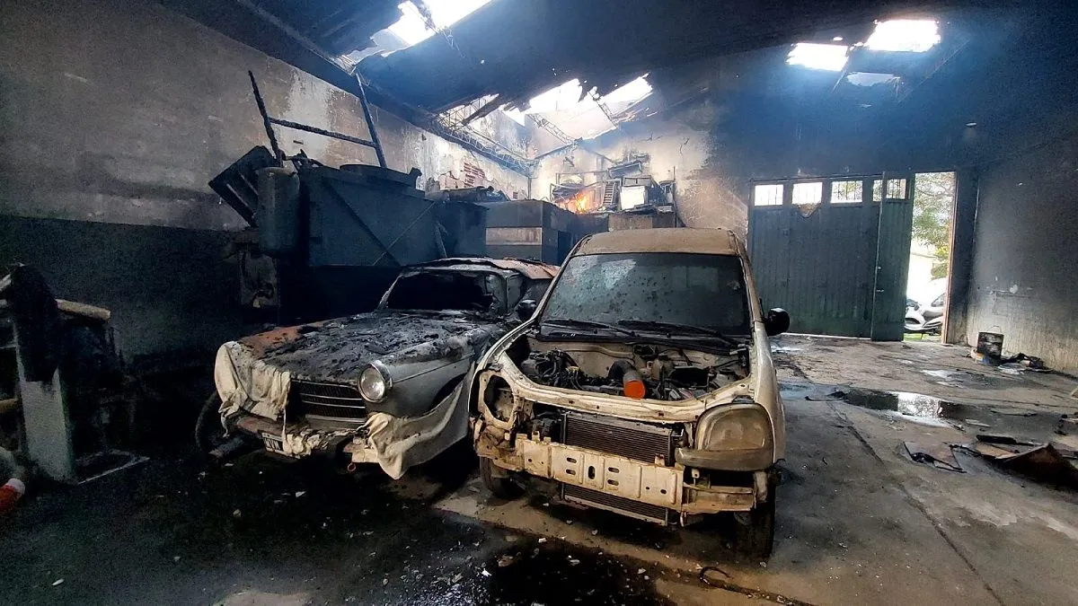 El siniestro ocurrió en la noche de este jueves cerca de las 23.40 y afectó gravemente a cuatro automóviles, una moto y maquinaria que se encontraban en el interior del inmueble.