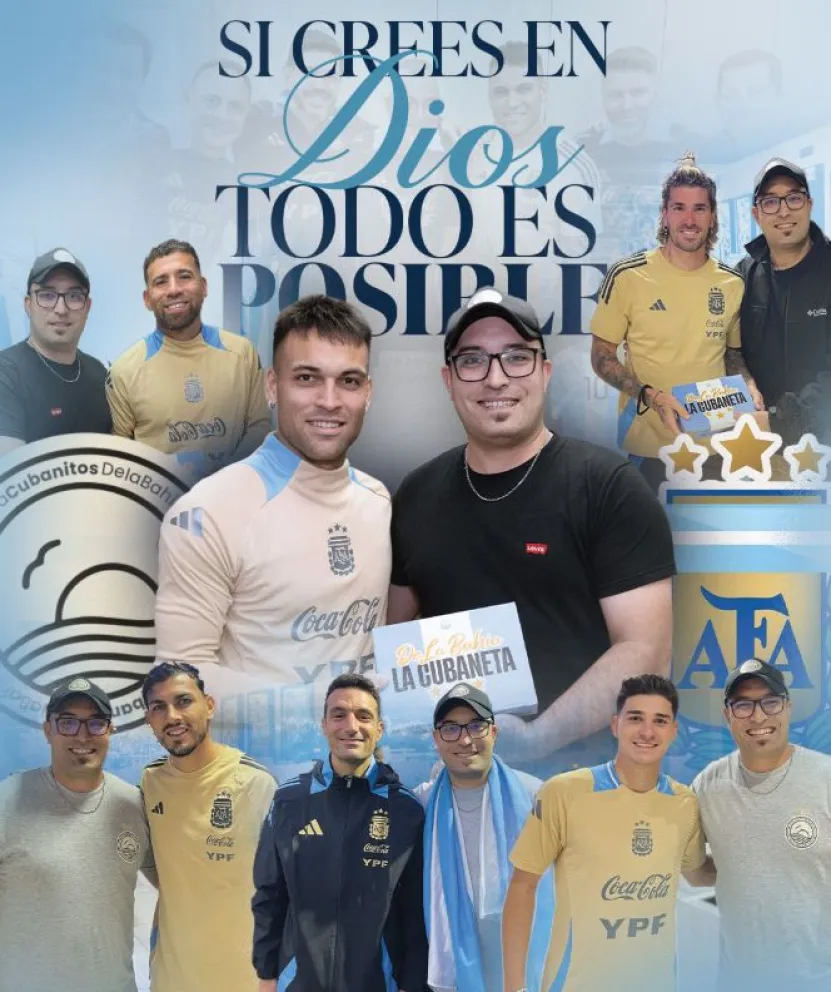 Otro de los orgullos de Juan es que sus productos hayan sido degustados por varios de los jugadores de la Selección Argentina campeona del Mundo. A través del bahiense Lautaro Martínez llegaron a Julián Alvarez, Leandro Paredes, el técnico Leo Scaloni y hasta el Chiqui Tapia. Como recompensa, guarda como un tesoro la remera de Campeón del Cubanito firmada por todos los jugadores.
