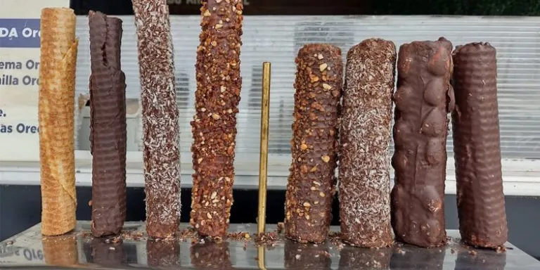 Cada fabricante le da también su impronta en lo que tiene que ver con la cobertura. Explica José: “ Yo tengo los tradicionales cubanitos finitos cubiertos con chocolate blanco o negro, negro con coco o con maní, blanco con coco o con maní. Después están los gigantes especiales hechos con la misma masa que se usa para rellenarlos con helado, pero hago el blanco con coco, negro con maní, blanco con galletitas Oreo, con Chocolinas o chocolate Shot, con almendras, rellenos con dulce de leche, de mantecol casero, de pistacho, o sea que el consumidor tiene una amplia variedad para elegir.”