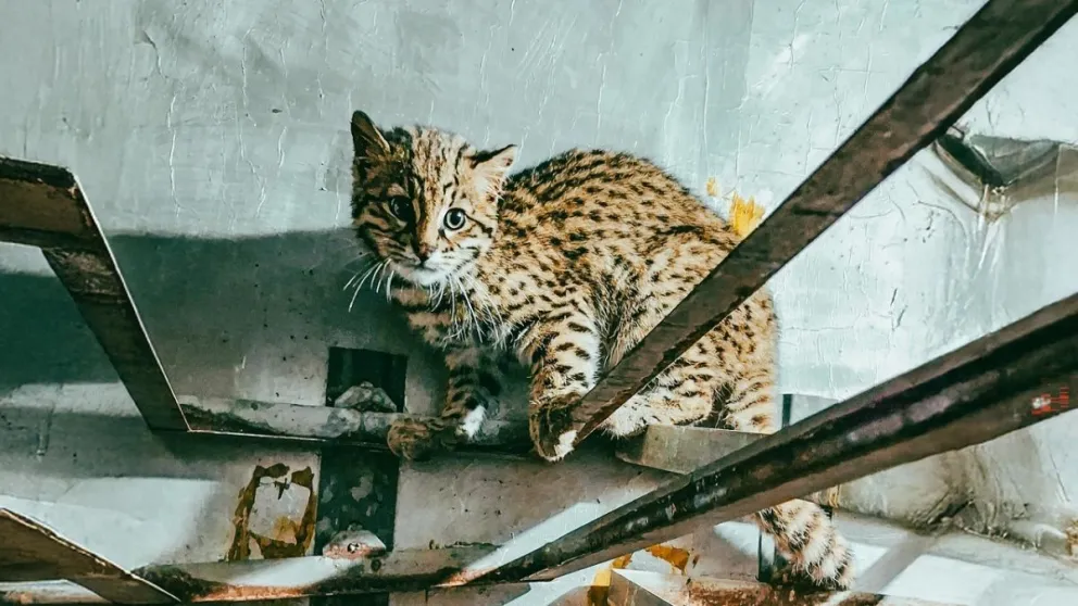 Un gato montés bebé fue rescatado en un criadero de pollos ubicado en Sierra de los Padres. El animal se encontraba escondido y fue liberado por guardaparques del Ente Municipal de Servicios Urbanos (EMSUR).