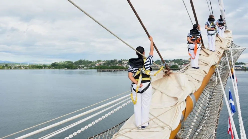 El buque escuela de la Armada Argentina viajó durante 26 días desde Lisboa hasta la Bahía de Limón.