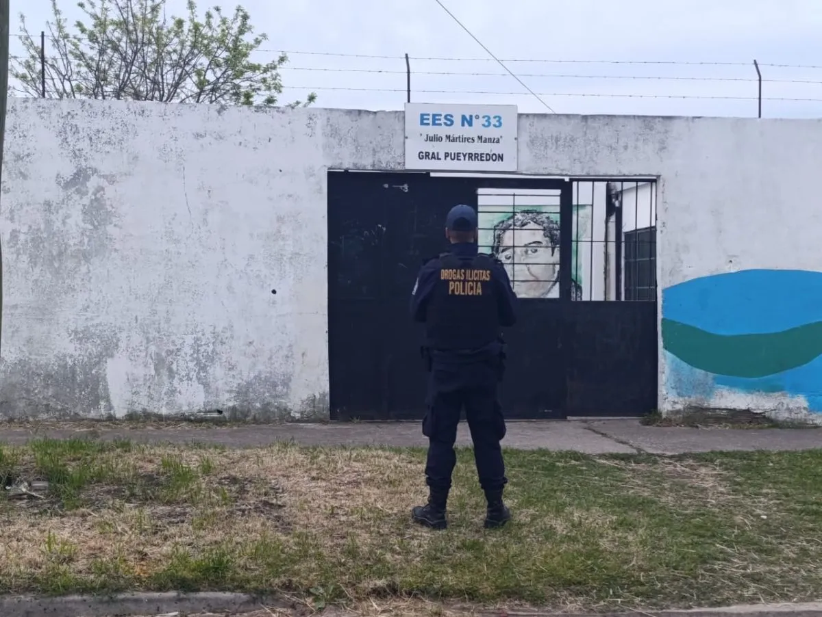 En este caso se tomó un recaudo especial ya que la vivienda donde se centralizaba la actividad de narcomenudeo se encuentra justo frente al edificio de la Escuela de Educación Secundaria N°33 "Julio Mártires Manza".