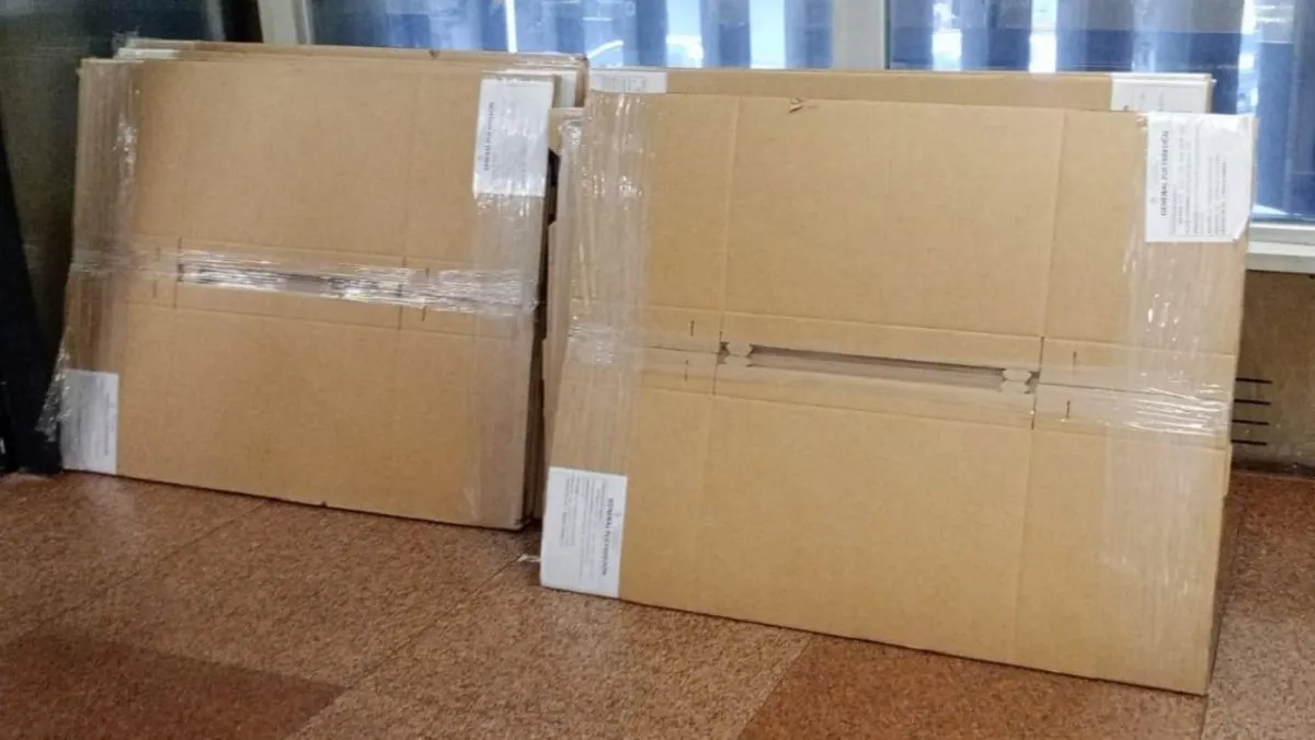 Las estructuras, llegadas a la ciudad este viernes, están construidas enteramente de cartón y cuentan con las inscripciones y escudos que los identifican como legítimos. Durante este fin de semana, los establecimientos escolares serán acondicionados para la ocasión.