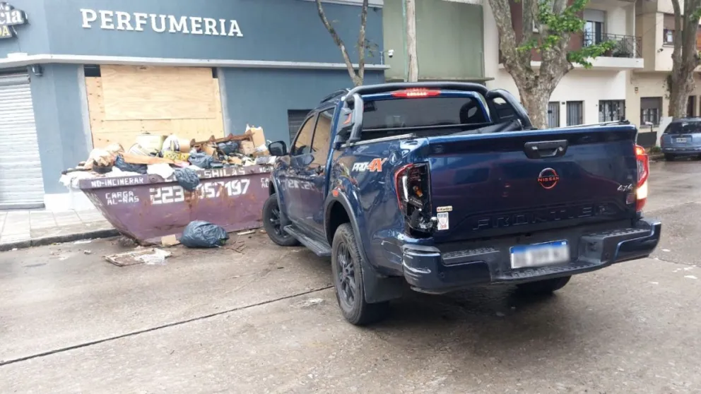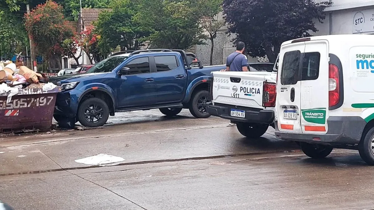 El leve impacto provocó que la camioneta perdiera el control, realizara un trompo y terminara colisionando contra un contenedor de residuos ubicado en la esquina.