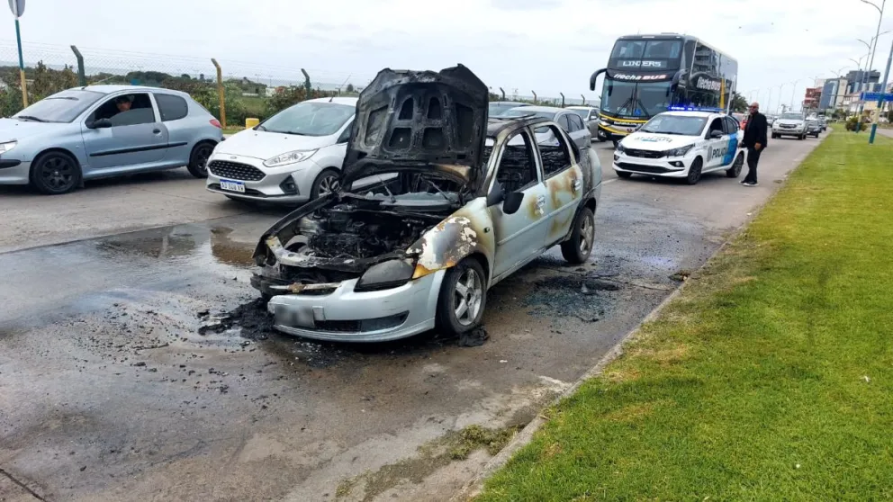 Un Chevrolet Corsa gris se incendió esta mañana en la intersección de Vernet y avenida de los Trabajadores, frente al predio de Aldosivi, cuando su conductor se dirigía al centro con sus hijos. El vehículo quedó completamente destruido.