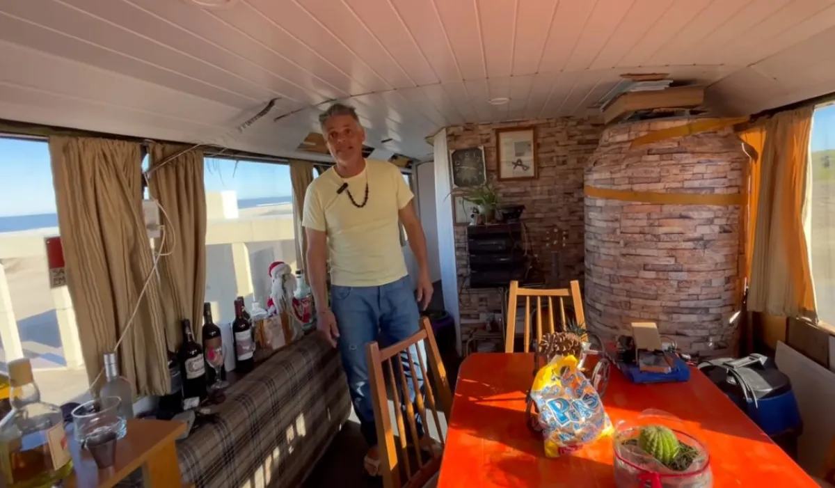 Dejó su casa y su negocio y hoy vive en un colectivo entre las dunas y el mar