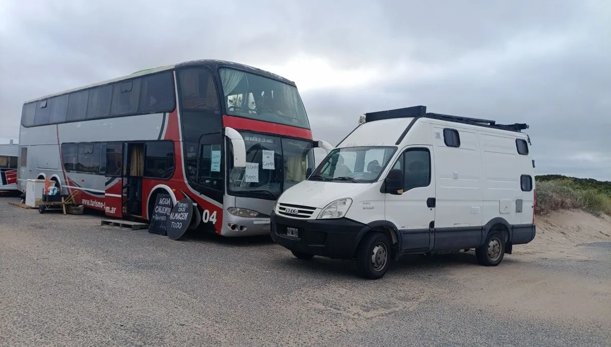 Jorge y su casa-colectivo están instalados en Punta Médanos desde el 23 de noviembre del 2024, pero su intención es en febrero o marzo del año que viene levantar anclas y ver la posibilidad de salir a conocer más rutas en el norte, aunque aclara que un día un rodantero le dijo: verás, si vos querés hacer reír a Dios, contale tus planes.