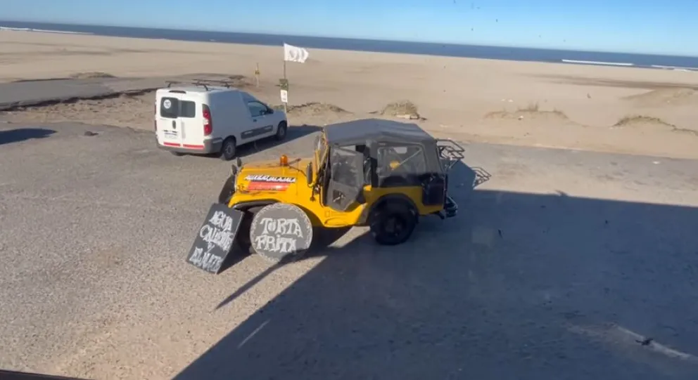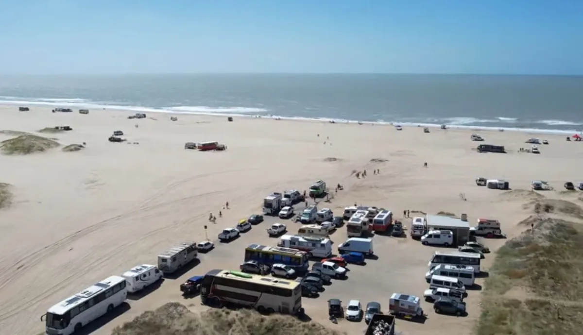 El playón donde está instalado el colectivo no tiene nada, ni siquiera una bombita de luz, es un lugar en estado casi salvaje. A su alrededor solo médanos y playa, que aunque haya marea alta tiene un ancho de unos 200 metros por unos 40 kilómetros de largo.