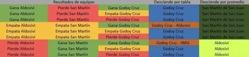 1. Gana su partido ante San Martín de San Juan → se salva sin depender de nadie.