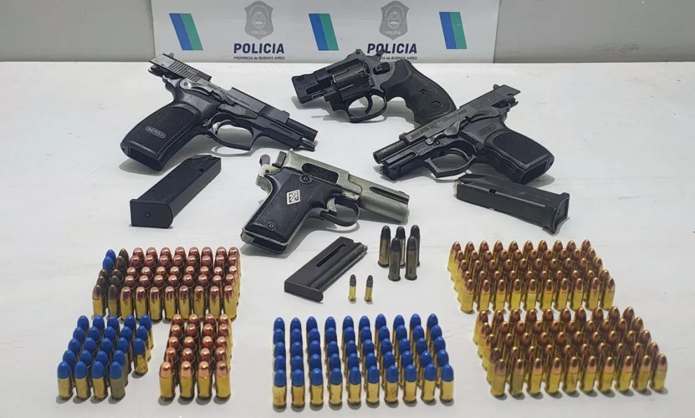 En la vivienda de la jubilada encontraron una Pistola marca Bersa calibre 40, otroa  Bersa calibre 9mm, una pistola marca GMV calibre 22, un Revolver marca Pucara calibre 38 SPL y 223 municiones de diversos calibres. Todas estaban cargadas y listas para su uso.
