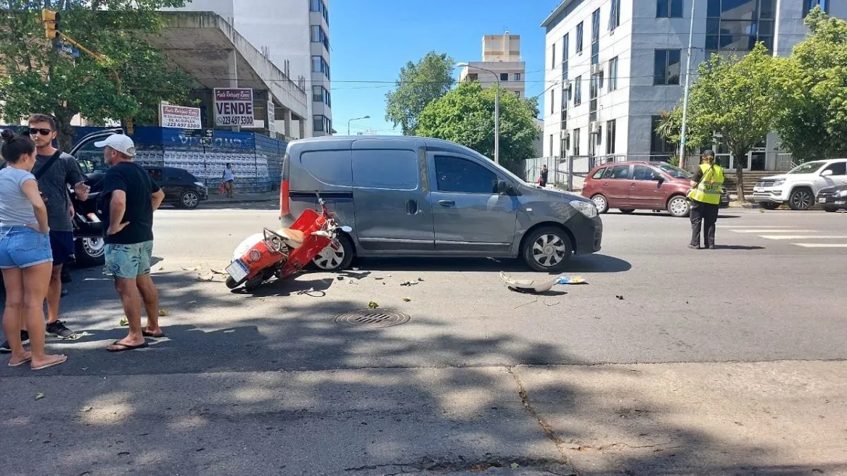 Un hombre debió ser trasladado al hospital luego de impactar fuertemente contra un utilitario, en una de las esquinas más transitadas de Mar del Plata.