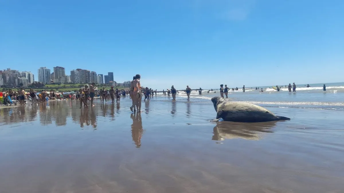 La escena se volvió, en segundos, el espectáculo del día. En una playa sorprendentemente concurrida para ser mediados de noviembre, el visitante marino se tiró a descansar sin apuro, gozando de los primeros calores fuertes de la temporada, en el sector más cercano a la Escollera Norte.