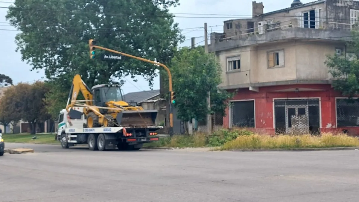 Un joven sufrió lesiones en una pierna cuando se preparaba para cruzar la esquina de avenidas Arturo Alió y Libertad y resultó impactado por un tramo de cable del tendido eléctrico aéreo que fue cortado al paso por un camión que transportaba una máquina retroexcavadora.