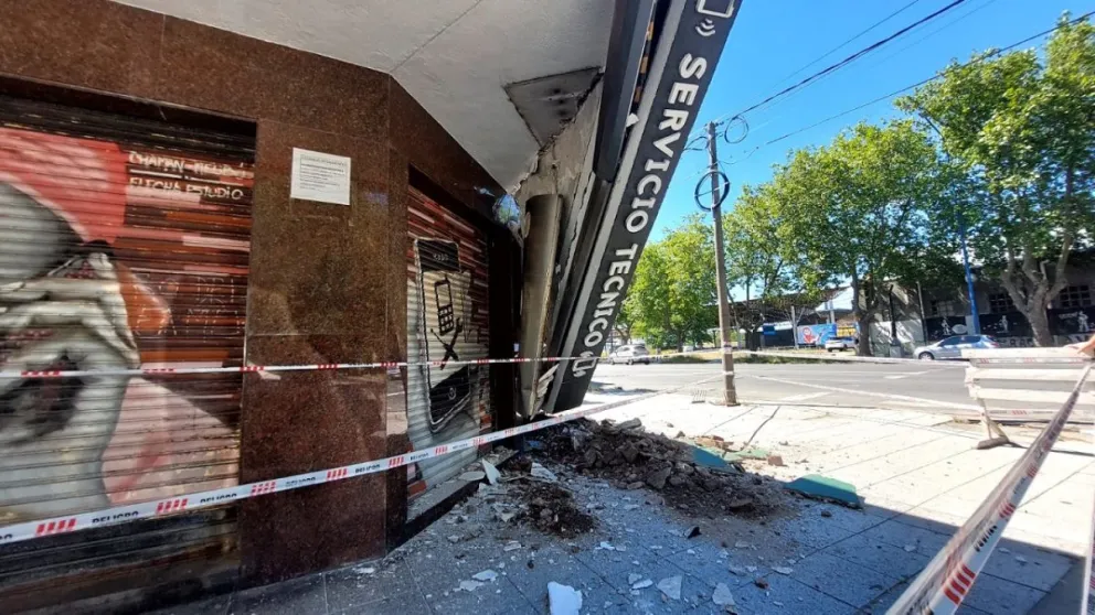 El móvil de Radio Brisas informó que el siniestro ocurrió cerca de las 14.30 de este miércoles, cuando parte de la estructura de concreto y de la mampostería se quebró y quedó colgando sobre la vereda de la avenida Luro. Por su parte, la porción ubicada sobre Chaco no llegó a desprenderse en su totalidad.