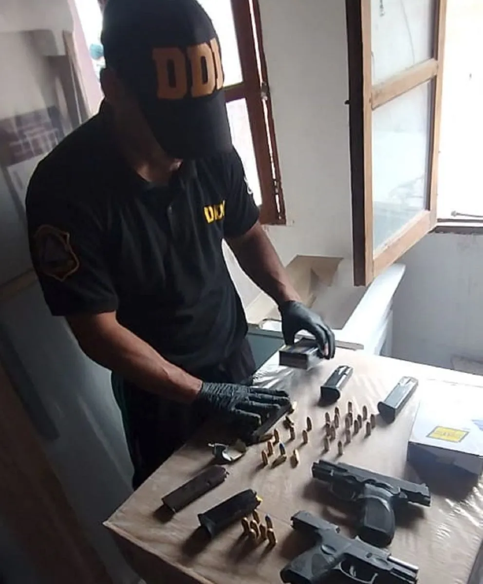 En el lugar fue detenida una joven de 22 años, hermana del prófugo, quien fue acusada de tenencia ilegal de armas de guerra y tenencia ilegal de arma de fuego.